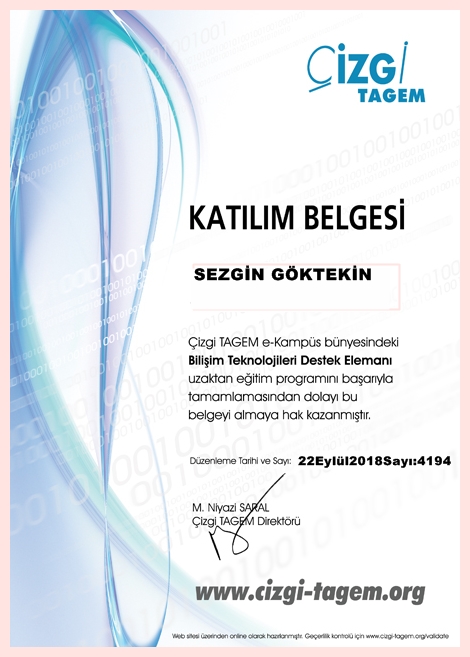 Çizgi TAGEM Katılım Belgesi